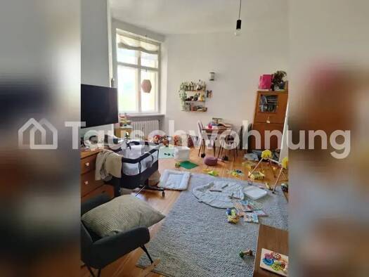Meine 88 Quadratmeter große drei Raumwohnung mit Gäste-WC, Balkon, Aufzug und zwei Abstellnischen biete ich zum Tausch einer 5-6 Zimmerwohnug an. Einbauküche kann übernommen werden nach Absprache. Wi...