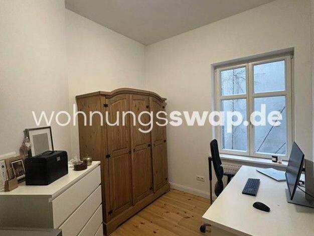Zum Tausch steht eine 3 Zimmer Wohnung in Moabit. Es ist ein geräumiger Altbau mit super hohen Decken und 2 renovierten Bädern. Sie befindet sich im Hinterhaus und ist somit super ruhig zu den Innenh...