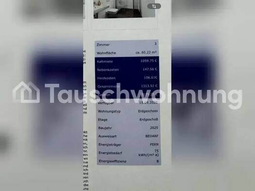 Es handelt es sich hierbei um ein Tauschangebot. (Anbieter-ID: 385591) Ich biete meine schöne 3-Zimmer-Wohnung im 1. OG zum Tausch an. Jedes Zimmer hat eine eigene Tür, zusätzlich sind die zwei größe...