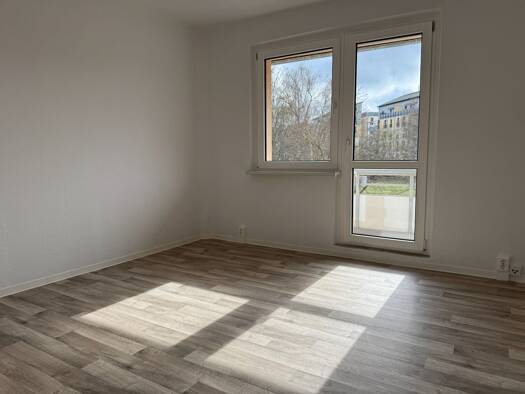 Objektbeschreibung Neu sanierter Plattenbau komplett KERNSANIERT mit Fahrstuhl, Wärmegedämmt, Dreifachverglasung, Balkon, Einbauküche, Laminat. Vor der Tür Stellplätze für das Auto inkl. Weitblick ins Grüne und sehr ruhig. Auch Garagen für 72,- Euro monatlich möglich. Mit großen 2 1/2 Zimmern, sehr große Essküche mit EBK-Einbauschränken, Wannenbad und Balkon. NUR NOCH EINE WOHNUNG FREI!!! Ab 01.07. FREI Raumaufteilung Sehr schöne 2 1/2 Zimmer, Einbauküche als sehr große Essküche gestaltet und W...