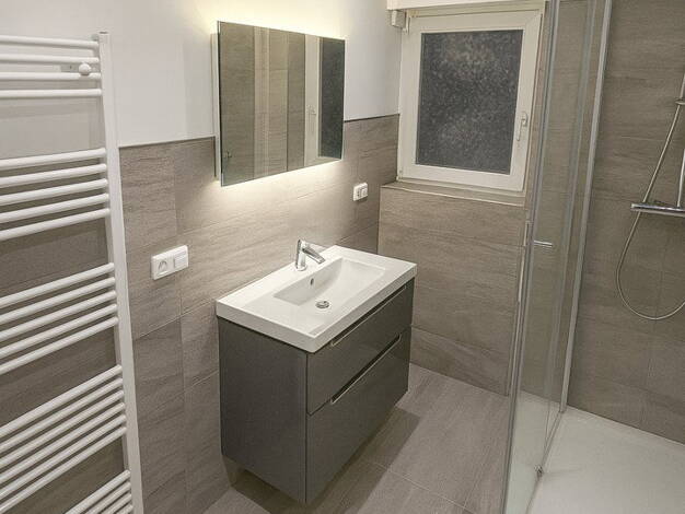 Diese attraktive 3 -Zimmer- Wohnung überzeugt durch eine moderne Ausstattung und ein gepflegtes Erscheinungsbild. Die Elektroanlage wurde bereits vollständig erneuert. Das innenliegende Badezimmer präsentiert sich nach umfassender Sanierung in zeitgemäßem Design und ist mit einer Badewanne, einem WC, einem Waschbecken sowie einem praktischen Handtuchheizkörper ausgestattet. Helle Wandfließen in Kombination mit dunklen Bodenfliesen sorgen für ein stillvoles Gesamtbild. In allen Wohnräumen wurden...