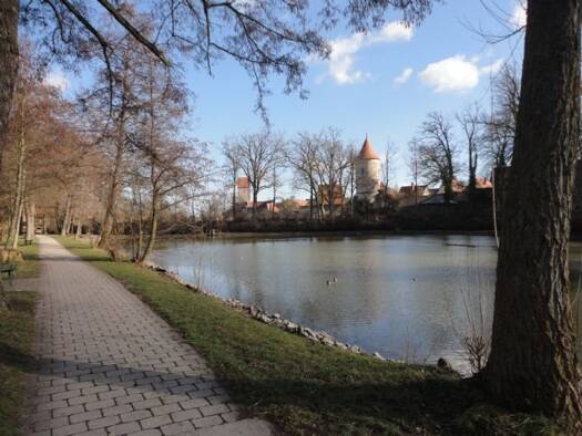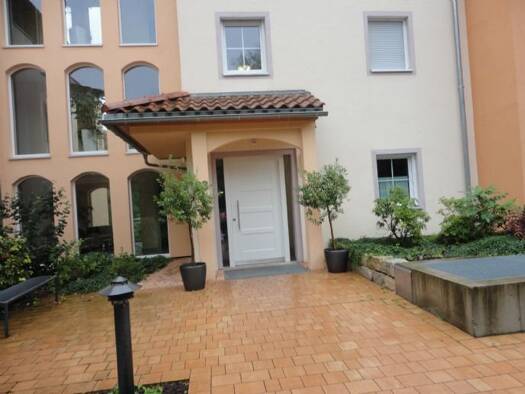 Objektbeschreibung Gepflegter Wohnkomfort im Bürger-Palais, einer der schönsten Wohnlagen Dinkelsbühls, barrierefrei. Direkt an Hippenweiher und Stadtpark gelegen, mit unverbaubarer Aussicht. Gehobene Ausstattung wie das einladende Foyer, ein Gäste-Apartment, Salon mit Teeküche. Die Fußböden im Treppenhaus geschliffener Granit, in den Fluren schalldämpfende Böden, Handläufe aus Edelstahl, die Wände teilweise handbemalt. Große Glasflächen zwischen den Stockwerken sorgen für Helligkeit und Durchs...