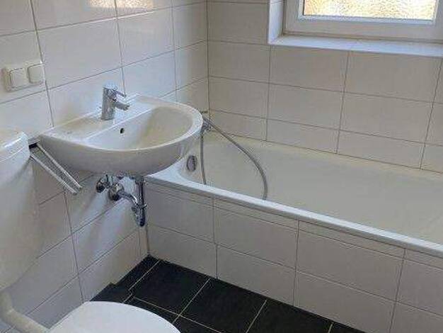 Die Wohnung befindet sich im 1 Og des Mehrfamilienhauses. Das Tageslicht Bad mit Badewanne. Von der Küche aus geht es ins Esszimmer und auf den Balkon. Die Küche ist unmöbliert und hat einen Fliesens...
