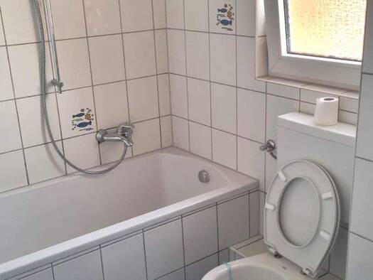 In dieser hellen 2-Zimmer-Wohnung im 1. OG eines Mehrfamilienhauses verfügen Sie über ein renoviertes und weiß gefliestes Tageslichtbad mit Wanne, einer geräumigen Wohnküche mit ebenfalls weißem, zei...