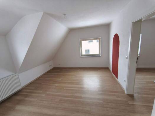 Diese Dachgeschosswohnung bietet Ihnen rund 82 m² Wohnfläche und gliedert sich auf in einen Wohnbereich mit integrierter Küche, ein Schlafzimmer, ein Büro und ein Badezimmer mit Wanne und Dusche. Im ...