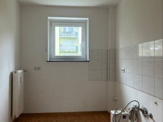 Objektreferenz: 77.9.91 Die inserierte Wohnung befindet sich im zweiten Obergeschoss eines gepflegten Mehrfamilienhauses. Beim Betreten der Wohnung gelangen Sie in den Flur. Von dort haben Sie Zutritt zur Küche und dem geräumigen Wohnzimmer mit anliegendem Balkon. Dieser verfügt idealerweise über einen Abstellraum für zusätzlichen Platz. Ein weiterer Flur befindet sich an der Kopfseite des Wohnzimmers. Über diesen erreichen Sie das Kinderzimmer, das Tageslichtbad mit Badewanne sowie das lichtdu...