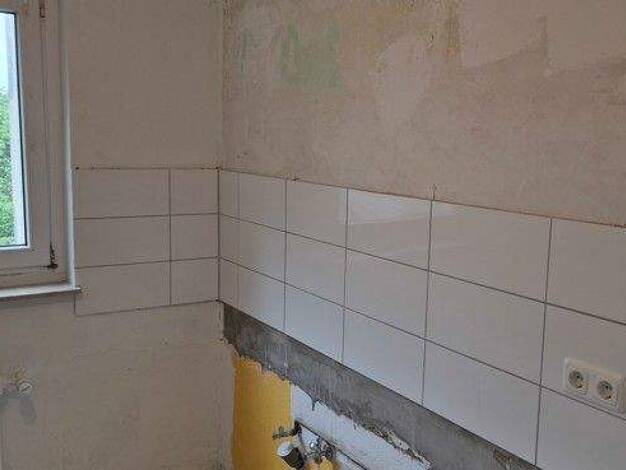 Wir haben für Sie renoviert! Es wurde ein modernes Bad mit Wanne und Handtuchwärmerheizkörper eingebaut. Des Weiteren haben wir Wände und Decken mit Raufaser tapeziert und weiß gestrichen, die Heizkö...