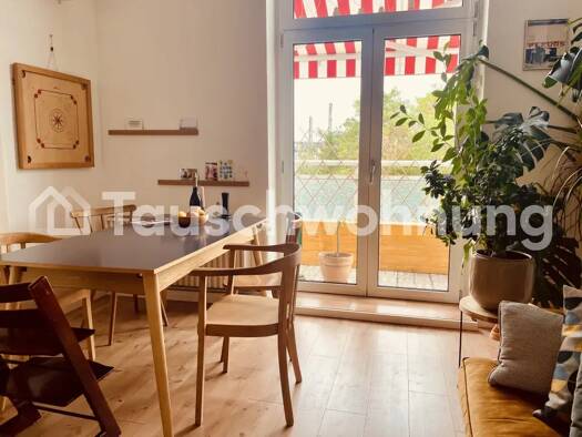 Wir wollen perspektivisch zu Mitte 2026 nach Berlin ziehen und suchen eine schöne helle Tauschwohnung mit Balkon, Badewanne und guter Anbindung an den ÖPNV. Ab 2. OG mit Fahrstuhl. Unsere Wohnung hat 3 Zimmer (ein größeres zum Hof, zwei kleinere zur Straße) und eine Wohnküche mit Balkon. Sie ist sehr schön und hell. ÖPNV Haltestellen sind 6 min entfertnt, 10min bis Köln Hbf, 20min bis Düsseldorf Hbf. Durch Güterverkehr hört man in den zwei Zimmern zur Straße nachts die Züge. Tagsüber ist es ruh...