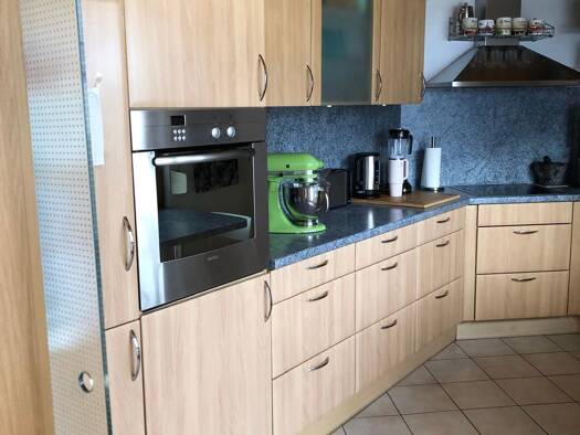 Großzügige helle 3-Zi-Wohnung im II. OG mit Aufzug; Wohn-/Esszimmer mit offener Küche; Schlafzimmer, Arbeitszimmer; Abstellraum in der Wohnung; überall Fußbodenheizung; Fahrradraum im Keller, ebenso ...