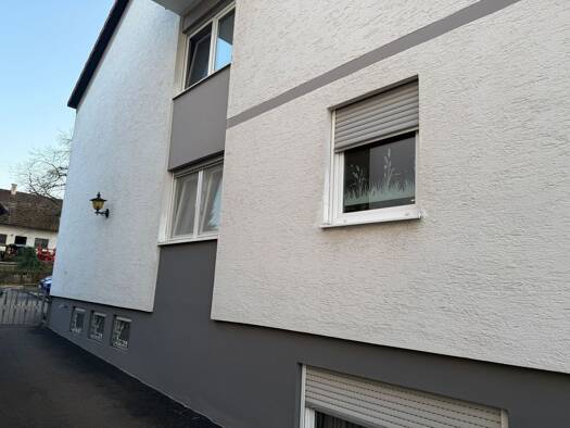 Beschreibung: Die Wohnung im Dachgeschoss verfügt über 3 Zimmer, Küche, alles tapeziert mit Raufaser weiß; ein Tageslichtbadezimmer mit Badewanne, Waschbecken, und einem separaten WC, Flur mit Einbauschrank, Balkon, separatem Kellerraum und Kfz-Stellplatz 50€. Die Wohnung wird über eine Öl-Zentralheizung beheizt. Der große Garten, mit Wäschetrockenplatz kann gemeinschaftlich genutzt werden. Laminatboden bzw. Fliesen, Gartenmitbenutzung. Ausstattung: Alle Zimmer und Flur mit Laminat. Küche, Bad ...