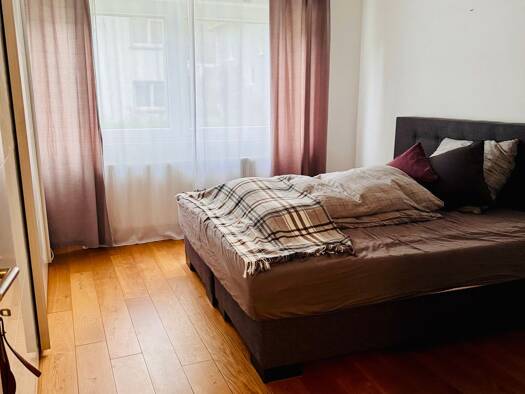 Die schöne Wohnung besteht aus einem großzügigen Wohn - Esszimmer, zwei Schlafzimmern, Küche, Bad, WC und Abstellkammer. Die Küche ist mit einer neuwertigen Einbauküche ausgestattet und hat einen kle...