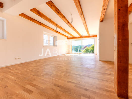 Die Wohnung liegt im Dachgeschoss (links) und im darüber liegenden ausgebauten Studio (Wohnung Nr. 4). Die Wohnfläche beträgt ca. 89 m² und teilt sich, wie aus den in der Anlage beigefügten Grundriss...