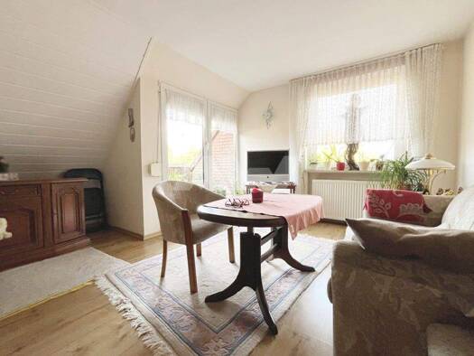 Diese Dachgeschosswohnung befindet sich in zentraler Lage von Hage. Verschiedene Einkaufsmöglichkeiten, Bäcker, Ärzte, Apotheken, Cafés sowie Restaurants befinden sich in fußläufiger Umgebung. Das Lü...