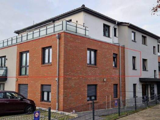 Die großzügig geschnittene 3-Zimmer-Wohnung befindet sich im Obergeschoss eines in 2021 neu gebauten Mehrfamilienhauses mit insgesamt sechs Parteien. Die Wohnung ist über wenige Stufen oder einen Fah...