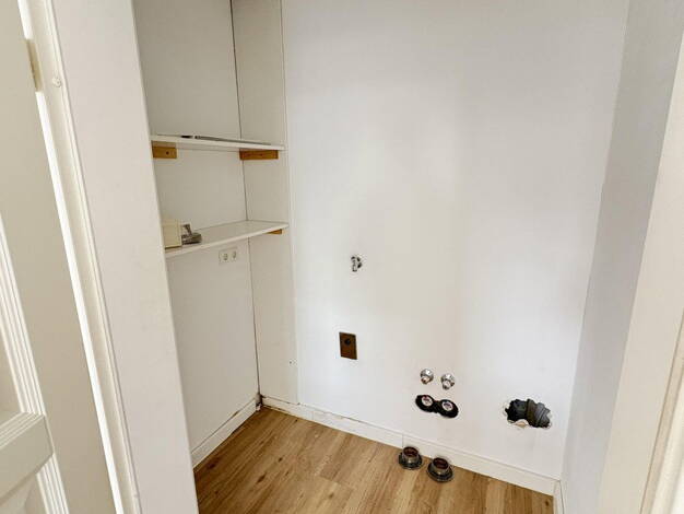 Das Gebäude umfasst insgesamt acht Wohneinheiten, verteilt auf drei Geschosse. Die verfügbare Wohnung befindet sich im oberen Bereich, im linken Dachgeschoss.