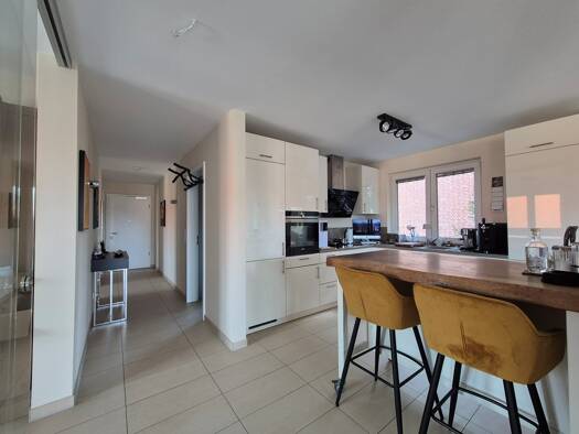 Diese durchdacht geschnittene Wohnung vereint zeitgemäßen Wohnkomfort mit nachhaltiger Bauweise und überzeugt durch eine klare Raumstruktur und vielseitige Nutzungsmöglichkeiten. Das Herzstück bildet der großzügige Wohn- und Essbereich mit offenem, kommunikativem Wohngefühl. Die bereits vorhandene Einbauküche ist flexibel nutzbar - ob als offene Kochzone oder klassischer Küchenbereich mit eigenem Rückzug. Ein besonderes Highlight ist die private Dachterrasse mit rund 9 m² - ein exklusiver Außen...