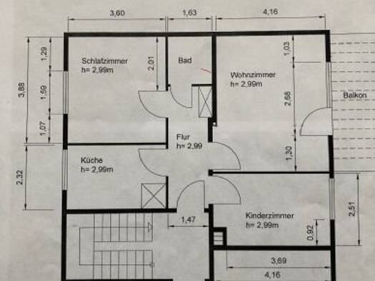 Objektbeschreibung 3-Zimmerwohnung im 1. Obergeschoss eines gepflegten 8-Familienhauses Raumaufteilung Wohn-/ Esszimmer, Schlafzimmer, Kinder-/ Arbeitszimmer, Küche, Diele, Bad, Balkon, Kelleranteil Der Balkon ist sowohl vom Wohnzimmer als auch von der Küche zugänglich.