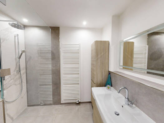Der Neubau-Gebäudekomplex besteht aus zwei Mehrfamilienhäusern die Anfang 2026 fertig gestellt wurden. Unter dem bebauten Areal befindet sich eine Tiefgarage, in der für jede Partei mindestens ein Stellplatz vorgesehen ist. Zudem gibt es weitere Stellplätze im Innenhof. Die Wohnungen werden im Erstbezug vermietet und sind somit in einem top Zustand. Das Haus ist optimal gedämmt und verfügt über eine moderne Heizung (Gas-Wärmepumpe). Dadurch sind die Heizkosten gering und die Wohnungen energieef...