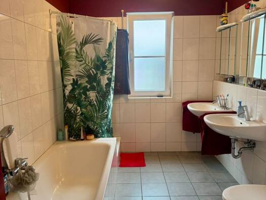 Die Wohnung ist 90 Quadratmeter groß und liegt im 1.OG und verfügt über einen separaten Eingang. Ein modernes Badezimmer und eine moderne Toilette lassen keine Wünsche offen. Die Heizkosten (Gasetage...