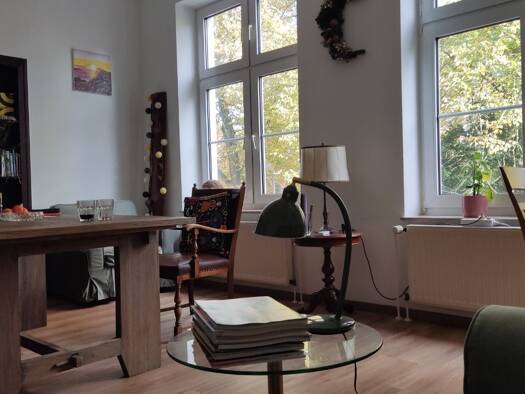 Die Wohnung vereint viele positive Eigenschaften: Die Lage in der ersten Etage bietet Sicherheit vor Einbruch und Sie müssen nur wenige Treppenstufen laufen. Das Haus aus der Gründerzeit bietet Stil und hohe Decken. Sie können ein Gartenteil nutzen, der Garten liegt ruhig und beschaulich im hinteren Teil des Grundstücks. Der Grundriss der Wohnung bietet eine Trennung von Wohnen und Essen. Das Esszimmer kann ebenso gut als Kinderzimmer genutzt werden.