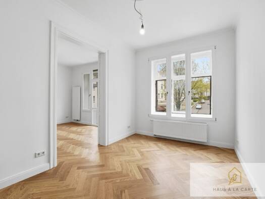 Diese wunderschöne Wohnung bietet mit einer großzügigen Wohnfläche von 104 Quadratmetern und 3 Zimmern viel Platz für individuelles Wohnen. Das im Jahr 1904 erbaute Gebäude wurde vollständig saniert und den heutigen Bedürfnissen angepasst und besticht durch seinen historischen Charme und architektonische Details, die Liebhaber des klassischen Stils begeistern werden. Hohe Decken (2,9m) und große Fenster sorgen für eine helle und einladende Atmosphäre in allen Räumen. Die Wohnung ist ideal für M...