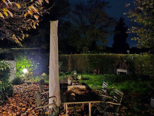 Großer Küchenraum mit Einbauküche, großer Kühl-Gefrierkombination, großer Esstisch. Neues Tageslichtbad mit bodentiefer Dusche. Schlafzimmer zum Garten mit großzügigem Doppelbett. Wohnzimmer mit groß...