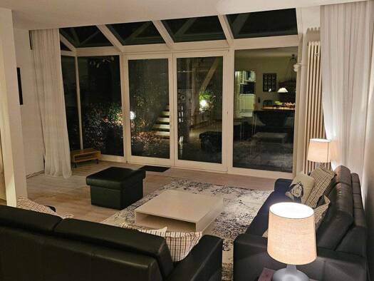 Große Küche mit Einbauküche, großer Kühl-Gefrierkombination, Loggia und Abstellkammer. Tageslichtbad neu Schlafzimmer zum Garten mit großzügigem Doppelbett. Wohnzimmer mit Echtledercouch. Kleines 2. ...