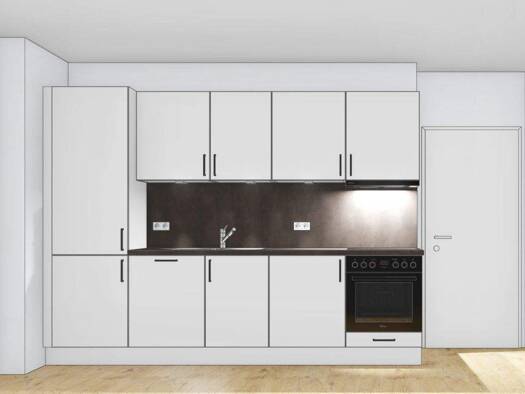 Diese geräumige 3ZKB Wohnung ersteckt sich über eine Wohnfläche von 68 m². Sie verfügt über einen Flurbereich, Schlafzimmer, Wohnzimmer mit Durchgangszimmer zum zweiten Schlafzimmer und einer separaten Küche (die Küche wird kostenfrei überlassen, der Mieter kann auch gerne eine eigene Küche installieren). Zudem kommt ein modernes Tageslichtbad hinzu.