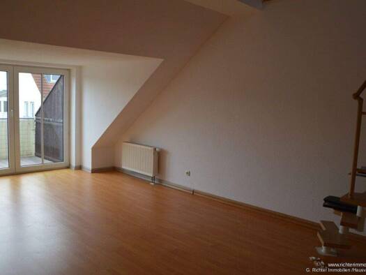 Zur Vermietung steht ab sofort eine 3-Raum-Wohnung mit einer Gesamtwohnfläche von ca. 75 m² im Dachgeschoss eines Mehrfamilienhauses in Geyer. Die Wohnung besteht aus einem Wohnzimmer mit angrenzende...
