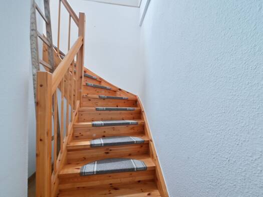 Im 1. Obergeschoss der Maisonette-Wohnung befinden sich das Wohn-/ Esszimmer, ein Gäste-WC, die Küche mit Fenster und ein Abstellraum. Im 2. Obergeschoss befinden sich 2 Schlafräume und ein Bad mit Badewanne. Die Wohnung ist malermäßig Instandgestzt und es wurde in allen Wohn- und Schlafzimmern sowie den Fluren ein moderner Laminatboden verlegt. Beide Bäder sind raumhoch gefliest. Zur Wohnung gehört ein Kellerabteil.