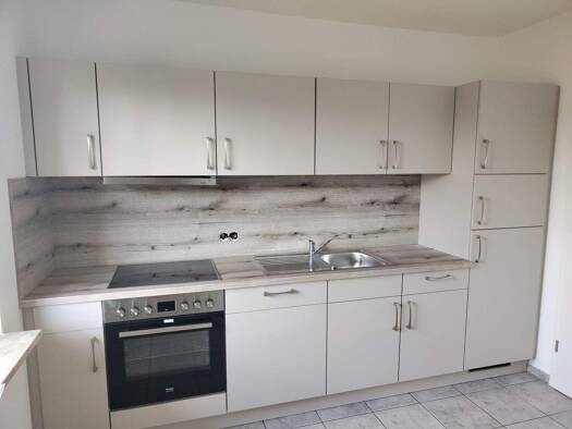 Neues Zuhause gesucht? Diese frisch sanierte Wohnung wartet auf Sie. Die Wohnräume sind allesamt weiß gespachtelt und gestrichen. Der Boden ist mit einem robusten PVC-Bodenbelag in Holzoptik ausgesta...
