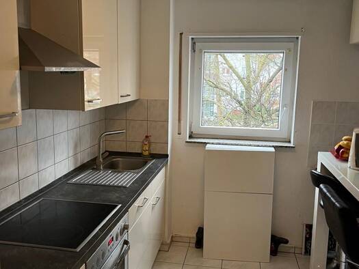 Die Wohnung ist hochwertig mit Fliesen und Parkett ausgestattet. Im Badezimmer (kein Tageslicht) befindet sich eine Badewanne und eine separate Dusche. Ferner gibt es 2 Balkone. Der Südbalkon hat eine Sonnenmarkise. Ebenso ist ein Tiefgaragenstellplatz mit direktem Hauszugang vorhanden. Im Keller ist ein Wasch- und Trockenraum. Anbindung an den ÖPNV sowie an Nahversorger fussläufig zu erreichen. Hochwertige Einbauküche kann vom Vormieter übernommen werden. 3 MM Kaution Eine Besichtigung ist nac...