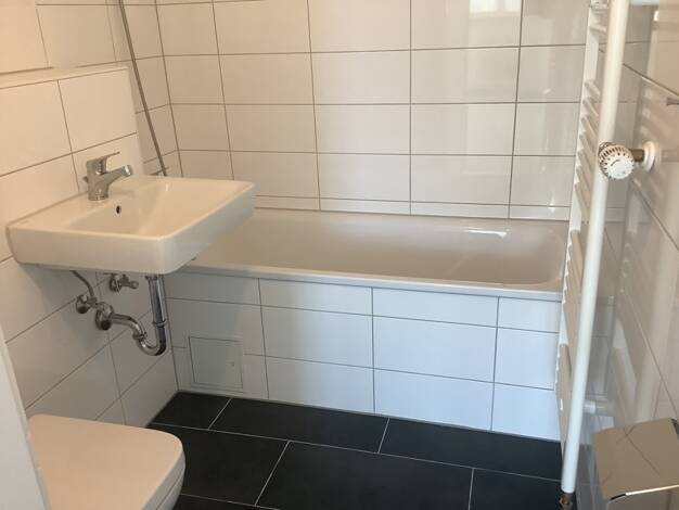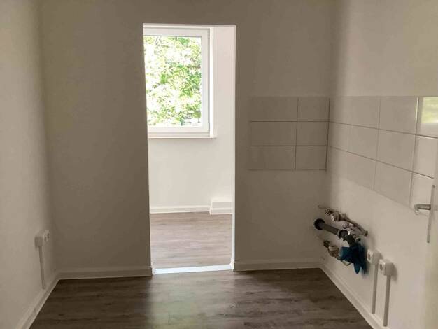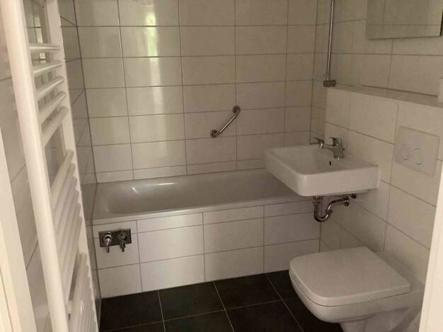 Schöne 3-Zimmer-Wohnung mit Balkon in einem Mehrparteienhaus. Die Wohnung wird vor Ihrem Einzug noch frisch renoviert und erhält ein modernes Bad mit Badewanne, grauen Boden und weißen Wandfliesen, sowie einem Handtuchheizkörper. Die Wände werden malerfertig gespachtelt und weiß gestrichen und alle Böden mit hochwertigen PVC-Klebeplanken ausgelegt. Sämtliche Innentüren und die Wohnungseingangstür werden ebenfalls erneuert.