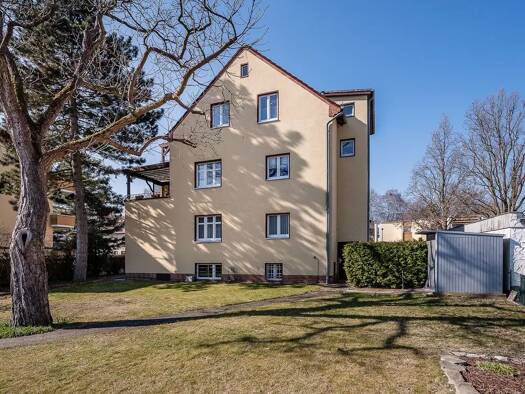 Die angebotene Dachgeschosswohnung ist Teil des 1910 im Jugendstil erbauten Wohn- und Geschäftshauses, nunmehr in der vierten Generation in Familienbesitz, seit 1992 in mehrenen Bauabschnitten saniert. Eine neue Einbauküche und die Badeinrichtung gehören zur Ausstattung der Wohnung. Ein PKW Stellplatz ist inbegriffen. Dem Haus schließt sich in westlicher Richtung ein parkähnlliches Grundstück an. Die alltägliche Nahversorgung übernehmen im Umkreis von 200 m Kaufland, Lidl, Rossmann, eine Apothe...