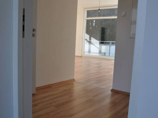Die Wohnung befindet sich im ersten Obergeschoss eines Mehrfamilienhauses. Man betritt sie durch das Treppenhaus in den Flur. Rechter Hand ist das Badezimmer mit Wanne und Waschmaschinenstellplatz, d...