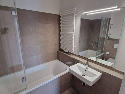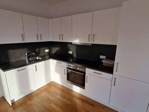 Das im Jahr 2022 neu errichtete Gebäude verfügt über fünf Etagen. Die hier angebotene Wohnung liegt im ersten Obergeschoss und ist in allen Räumen mit dreifachverglasten Holzfenstern ausgestattet. Di...