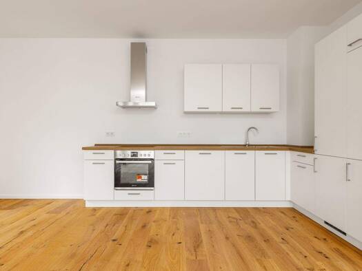 Moderne 4-Zimmer-Etagenwohnung mit gut geschnittenem Grundriss, offenem Wohnbereich und integrierter Einbauküche. Bodentiefe Fenster sorgen für helle Räume, edles Parkett und Fußbodenheizung bieten h...