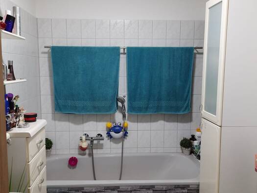 Objektbeschreibung Das Sechsfamilienhaus wurde 1959 erbaut und ab 2012 nach und nach saniert. Die Wohnung wurde 2017 renoviert und befindet sich im Dachgeschoss Jede Wohnung hat einen Kellerraum. Raumaufteilung Diele, Flur 1, Flur 2, 2 x Bad mit Wanne, 1 Kinderzimmer,1 Gäste-Zimmer, 1 Abstellraum, Wohnzimmer, Küche,