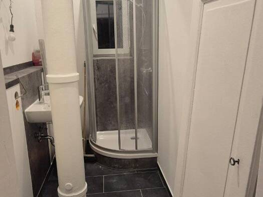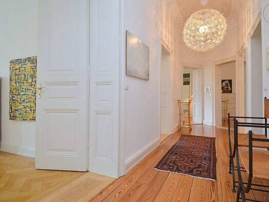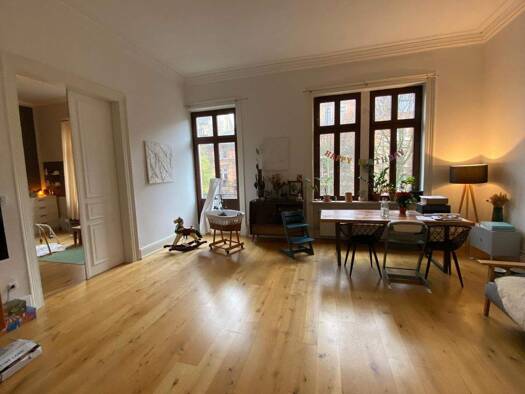 Die Wohnung liegt im 1. Obergeschoss eines historischen Gebäudes mit hohen Decken und Holzböden. Früher befanden sich auf dieser Etage zwei Wohnungen. Diese wurden zu einer großen Wohnung mit 3 Schla...