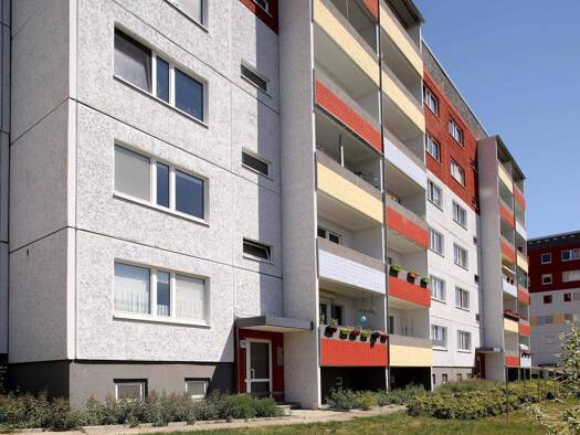 Unser 6-geschossiges Haus verfügt über 2- bis 4-Raum-Wohnungen zwischen 46 m² und 76 m². Zu jeder Mietwohnung gehört ein Keller. Ausreichend Parkflächen liegen direkt vor Ihrer Haustür. Ob Singles, junge Familien oder Senioren - Jeder findet hier die Möglichkeit, sich sein gemütliches Heim zu schaffen! Werden auch Sie Mitglied!