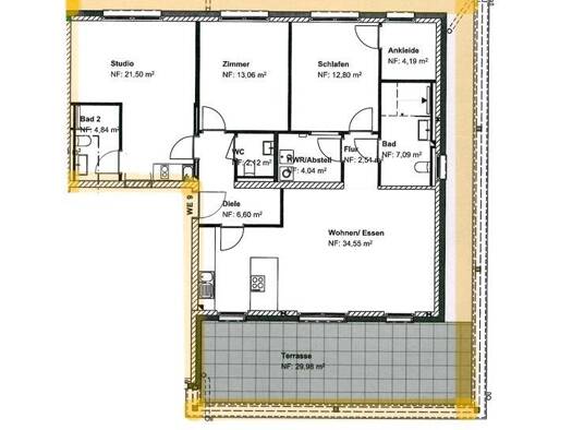 Bei dieser freundlichen Immobilie handelt es sich um einen Erstbezug in eine Penthouse-Wohnung im zweiten OG. Ein separates Gäste-WC zählt neben den vier einladenden Zimmern zu den Vorteilen der Wohnung. Diese lässt sich bequem über einen Fahrstuhl erreichen und ist barrierefrei zugänglich. Zur Wohnung gehört eine ca. 30m² große Dachterrasse. Das 4. Zimmer ist ähnlich eines Studios gestaltet und verfügt über ein eigenes Duschbad. Es besteht auch die Möglichkeit dort eine kleine Küche einzubauen...