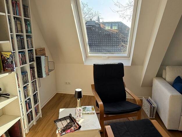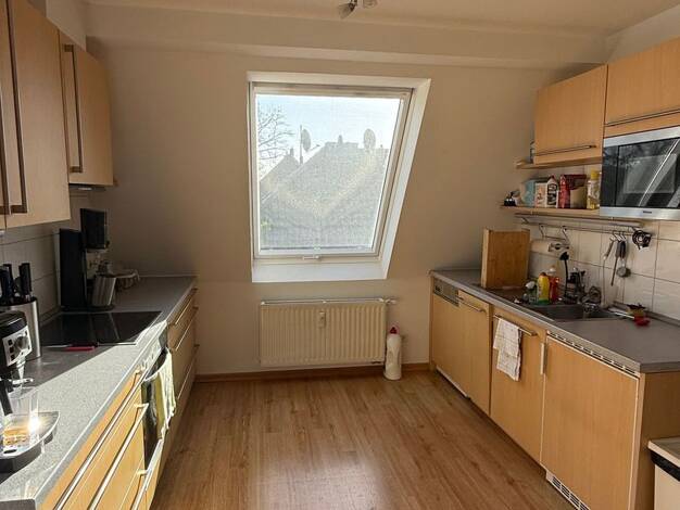 Die angebotene Wohnung befindet sich in ruhiger Lage in einem 3-Parteienhaus. Die Wohnung besteht aus einem Schlafzimmer, einem Wohnzimmer, einem Tageslichtbad mit Dusche und Badewanne sowie einer offenen Küche mit angrenzendem Essbereich. Die Einbauküche ist Bestandteil der Wohnung und mit einer Spülmaschine und einer Waschmaschine ausgestattet. Ein Teil des Dachbodens ist ausgebaut und könnte als Gästezimmer oder Arbeitszimmer dienen. Der andere Teil des Dachbodens ist nicht ausgebaut und die...