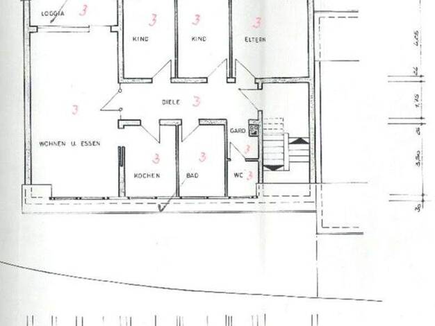 Objekt Die Wohnung befindet sich im 1. Obergeschoss eines gepflegten 7-Familien-Hauses. Aufteilung - Wohn-/Esszimmer (ca. 28,23 m²) - Schlafzimmer (ca. 17,08 m²) - Kinderzimmer 1 (ca. 7,56 m²) - Kinderzimmer 2 (ca. 10,19 m²) - Küche (ca. 13,15 m²) - Bad mit Duschwanne/WC (ca. 5,52 m²) - Abstellraum (ca. 1,00 m²) - Diele/Flur (ca. 11,67 m²) - Balkon (ca. 5,00 m²)