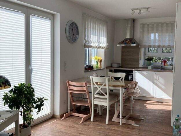Diese helle Wohnung befindet sich im ersten Stock in einem 3 Parteien-Haus in absolut ruhiger, zentrumsnaher Lage. Zur Obergeschosswohnung gehören 4 Zimmer, ein Badezimmer (mit Wandheizung) sowie eine Küche. Die Wohnung besticht durch ihre gehobene Ausstattung und ihren großzügigen Balkon. Durch die Solaranlage, die die Heizung unterstützt, fallen geringere Heizkosten an. 2 Stellplätze sind vor dem Haus vorhanden. Miete je Stellplatz 20€. Zur Wohnung gehört auch ein eigener Gartenanteil. Küche ...