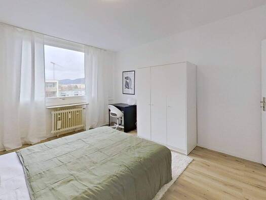 WG-Zimmer Modernes, voll möbliertes WG-Zimmer in einer frisch renovierten 4er-WG. Das Zimmer ist hell, gut geschnitten und vollständig ausgestattet mit einem Bett mit Matratze, einem Kleiderschrank, einem Regal, einem Stuhl und einem Schreibtisch und bietet ideale Voraussetzungen zum Wohnen, Lernen und Entspannen. Die Wohnung besteht aus vier Zimmern sowie gemeinschaftlich genutzten Bereichen wie einer Küche und zwei Bädern. Die WG wurde kürzlich renoviert und befindet sich in einem sehr gepfle...