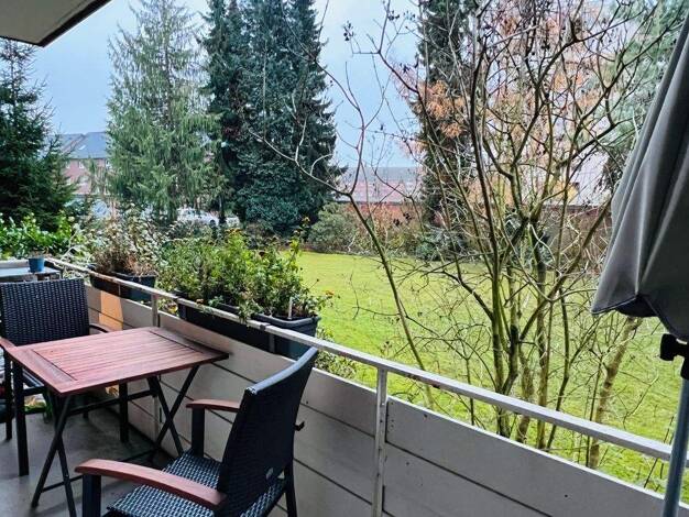 Gepflegte und gut aufgeteilte 2 + 2 halbe-Zim.-Whg. mit schönem Ausblick vom ca. 6qm großen West-Balkon. Die halben Zimmer sind mit je ca. 9qm relativ groß. Das weiße Vollbad hat einen WM-Stellplatz, die separate Küche hat buchefarbene Fronten und ist mit einem Ceran/Umluftherd, Filterhaube und Kühlschrank, sowie 90cm Hochschränken ausgestattet, von der Küche gelangt man ebenso wie vom Wohnzimmer auf den ca. 6qm West-Balkon, das Vollbad und das Gäste-WC sind in weiß gefliest, mit dunklen Bodenf...