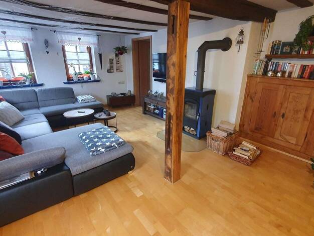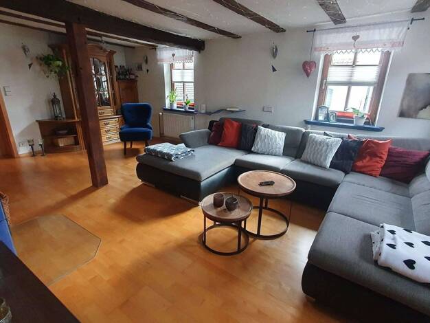 Diese charmante Maisonette-Wohnung im Fachwerkstil erstreckt sich über zwei Etagen und bietet ein besonderes Wohnambiente mit viel Charakter. Der großzügige Wohn- und Essbereich bildet das Herzstück der Wohnung und sorgt in Verbindung mit einem Kaminofen für eine besonders gemütliche Atmosphäre. Große Fensterflächen bringen viel Tageslicht in die Räume. Die Wohnung verfügt über mehrere flexibel nutzbare Zimmer, die sich ideal als Schlafzimmer, Kinderzimmer oder Homeoffice eignen. Durch die Auft...