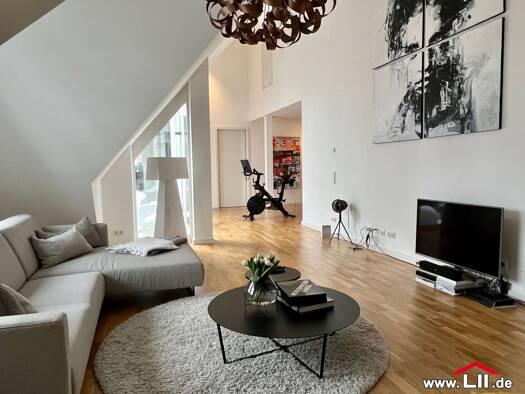 Diese stilvolle Maisonette-Wohnung im Dachgeschoss vereint modernes Wohnen mit naturnaher Ruhe in begehrter Feldrandlage. Auf zwei Ebenen bietet die Wohnung ein großzügiges Raumgefühl, helle Wohnbereiche und eine durchdachte Aufteilung - ideal für Paare, Familien oder anspruchsvolle Homeoffice-Nutzer. Die untere Ebene überzeugt mit einem offenen Wohn- und Essbereich, der durch große Fensterflächen lichtdurchflutet ist und einen herrlichen Blick ins Grüne ermöglicht. Hier genießen Sie Privatsphä...