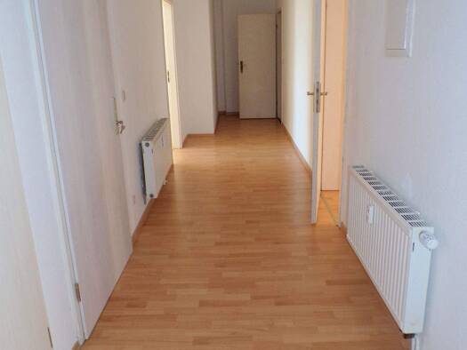 4,5 Raum-Etagen-Wohnung im 3. Obergeschoss mit ca. 168 m² (Einheiten 6 + 7) + Balkon bestehend aus: 4,5 Räume + Küche + 2 Bäder, Schrankzimmer, Flur, Garderobe, Gang etc. Der Zugang erfolgt über Treppenhaus (kein Aufzug). Gebäude-Front: 8 m Parkplätze: Können eventuell im Laufe 2025 hinter dem Gebäude auf dem E G-Flachdach nach vorheriger Baugenehmigung zur Verfügung gestellt werden a´EUR 75,-/Stück + Nebenkosten. Umbau u. Renovierung: Erfolgte in den Jahren 1995+99 + 2008 + 2023/24. Die Wohnun...