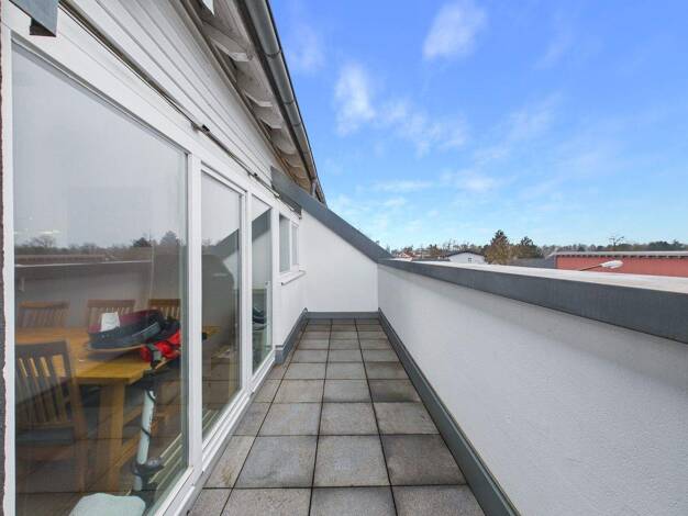 Die stilvolle Wohnung befindet sich im obersten Geschoss eines Mehrfamilienhauses (Baujahr 1984) mit 6 Wohneinheiten. Sie verfügt über 4 Balkone (2 Süd- und 2 Nordbalkone). - Wohn-/Esszimmer mit Kach...